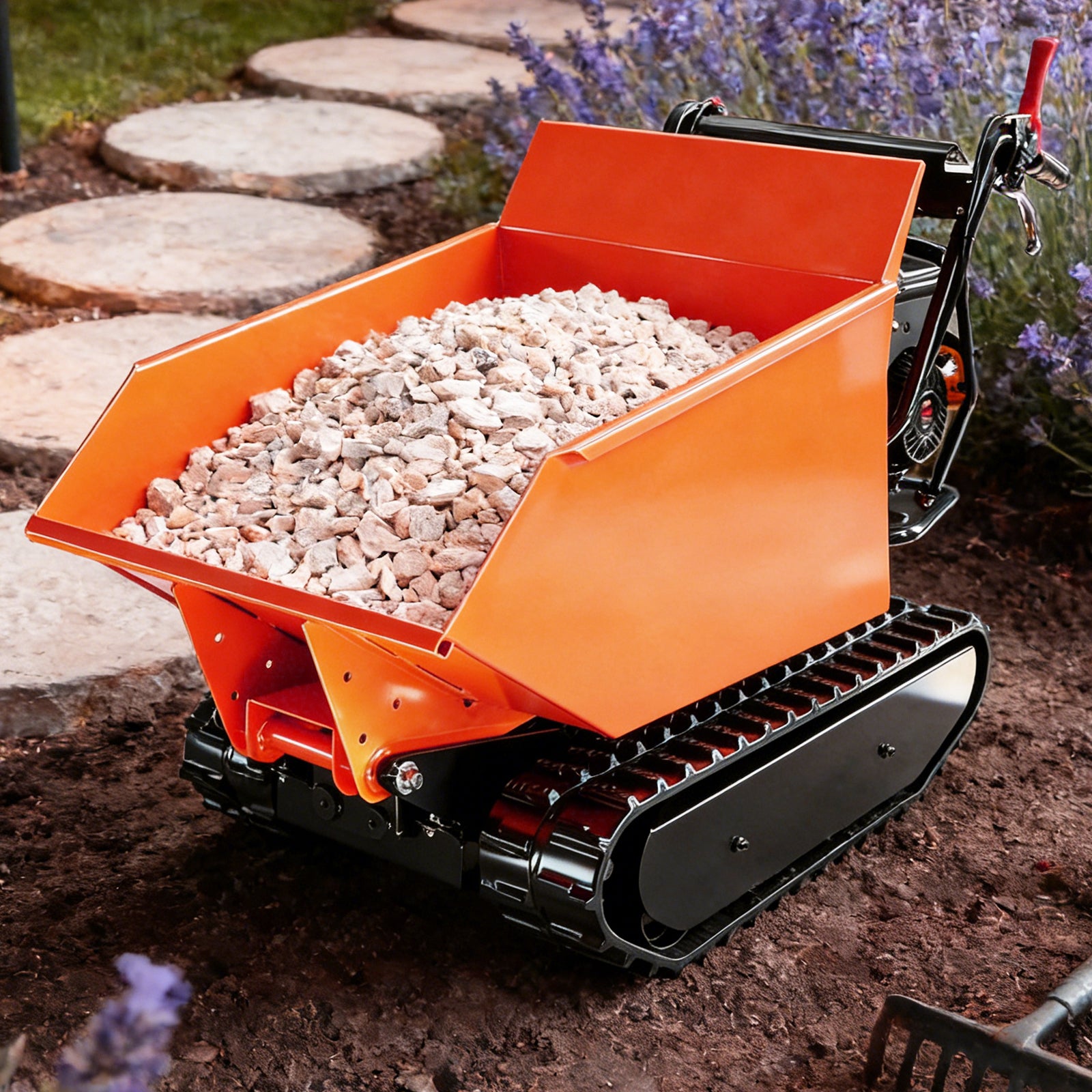 1100 lbs Loading Capacity Track Barrow with Hydraulic Assist, Gas Powered, Briggs XR1450,306cc 10HP, 3F+1R Gearbox