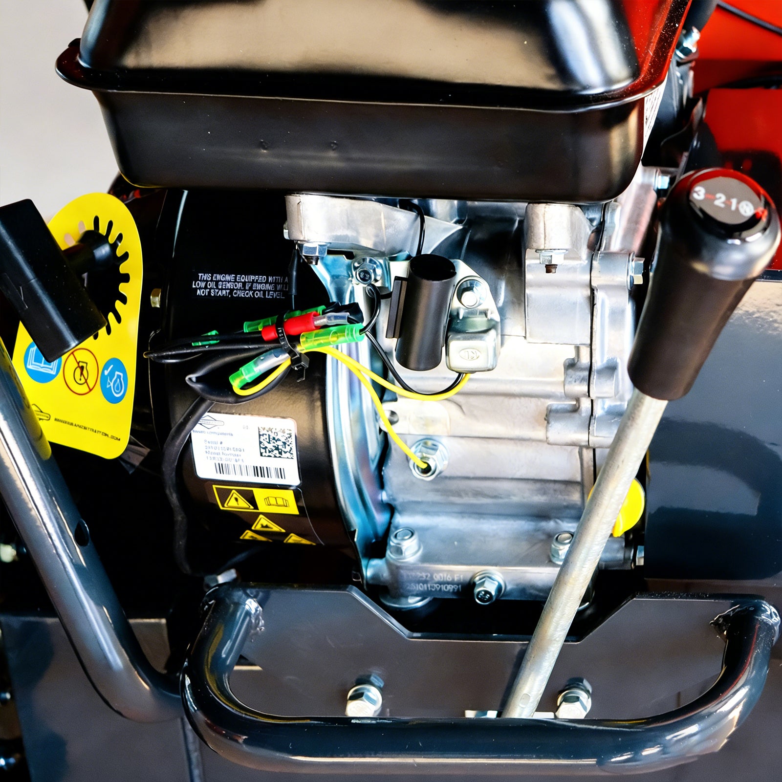 - Engine: 208 cc 6.5 HP Briggs & Stratton CR950, single cylinder, 4 stroke, air-cooled, OHV, recoil start.