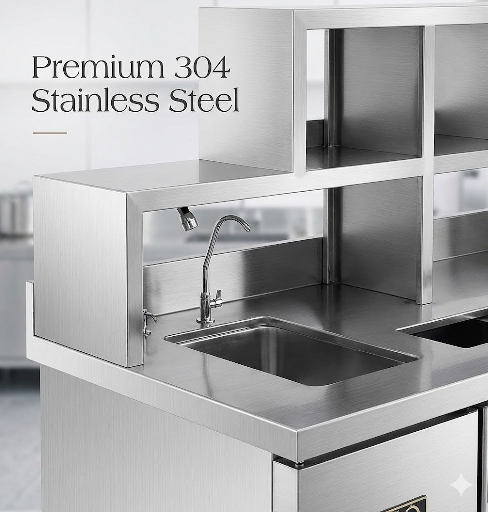 Bubble tea bar milk tea bar counter,The function of the high-pressure shower is to wash cups and containers quickly and movably, which is faster and more flexible than a cup washer.Bubble milk tea shop console with refrigeration and milk tea making